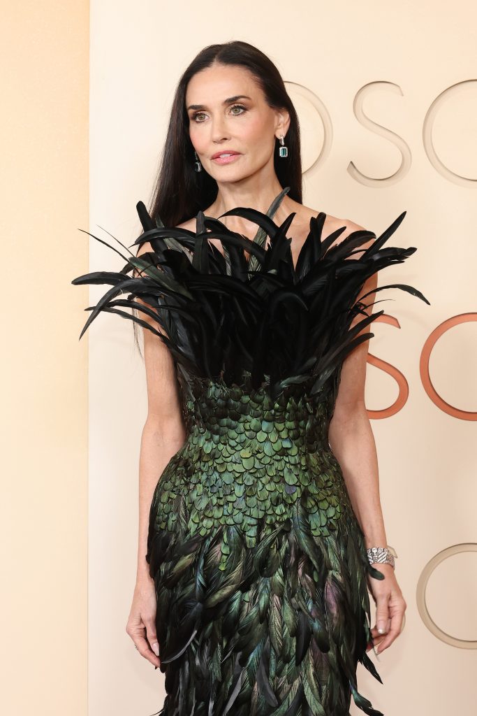 Demi Moore, en tant que présentatrice de la cérémonie, a émerveillé avec des bijoux étincelants de la collection Vendôme Liseré. Ses dormeuses et sa bague, ornées de tourmalines bleues taille émeraude et pavées de diamants, ont capté tous les regards. La pièce transformable Ruban Diamants, pavée de diamants, ajoutait une touche de sophistication Art Déco à son apparence.