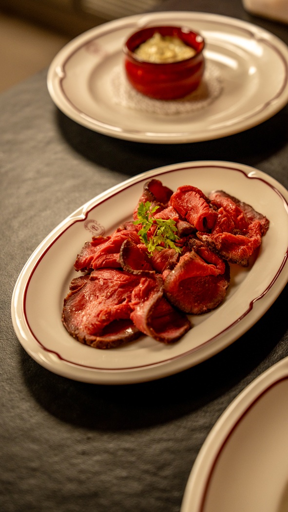 Rosbeef en chiffonnade finement tranché sauce tartare. Crédit : Brasserie Léopold