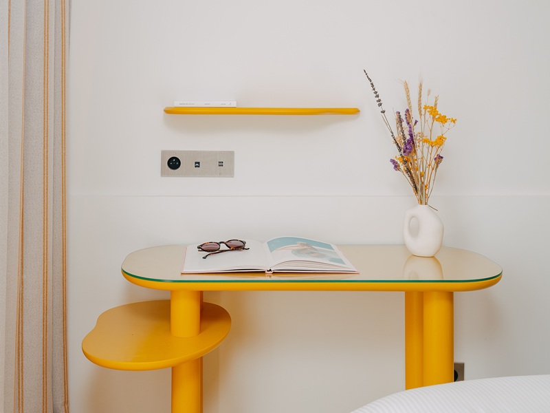 L’hôtel compte désormais 61 chambres, réparties sur plusieurs étages, chacun inspiré par la palette du maître Cézanne : bleu cobalt pour le ciel éclatant, ocre jaune comme les terres des collines, vert émeraude – souvenir des garrigues et terre de Sienne, chaude et enveloppante.