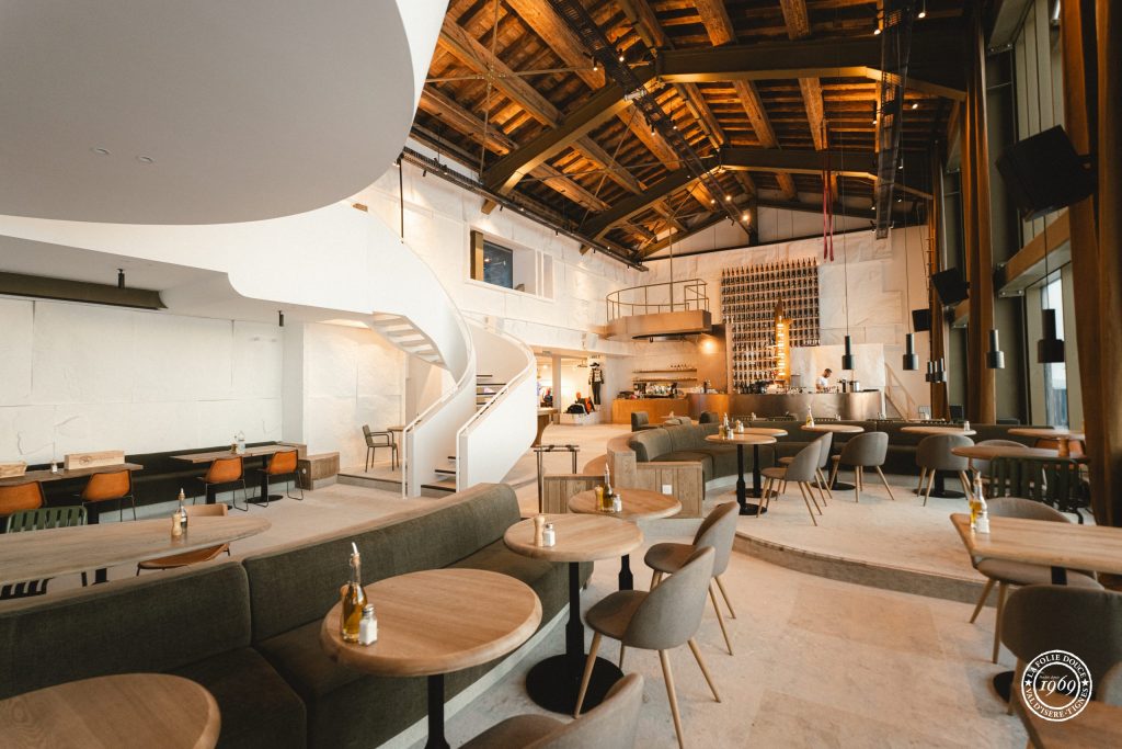 Au centre, un élément capte immédiatement l’attention : le piano de cuisine de 30 mètres. Le plus grand de France. Véritable point de convergence, il donne le tempo du lieu. Les chefs y cuisinent en direct, sous le regard attentif des convives.