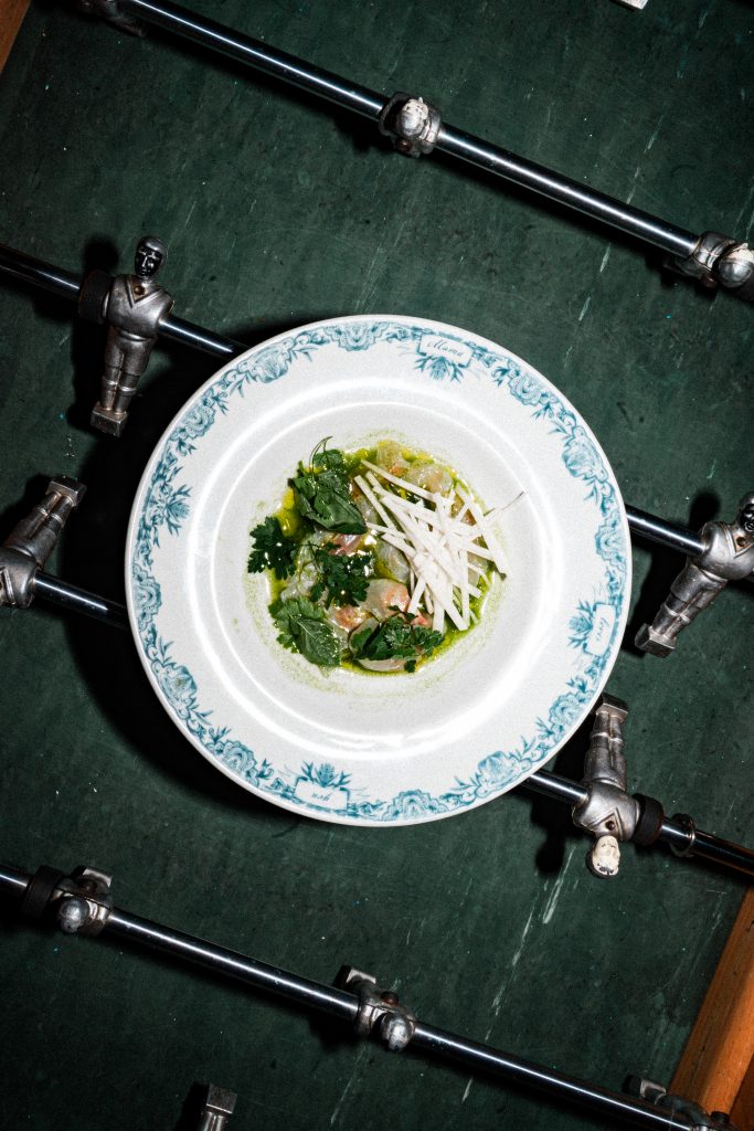 Ce menu « Día de San Valentín » reprend les codes de la cuisine mexicaine à travers une entrée, un plat, un dessert et un cocktail. Ce dernier, un chartreuse lemon margarita, est un mélange des cultures française et mexicaine. L’entrée, une daurade en agualiche et ses herbes folles, est aussi disponible en version végétarienne (pleurotes marinées). Pareil pour le plat, un Paleron braisé (boeuf) accompagné de salsa roja et de tortillas, qui devient un chou braisé pour les végétariens. Pour le dessert, une tarte au chocolat à la cerise marasquin et au mezcal, un alcool d’agave mexicain.