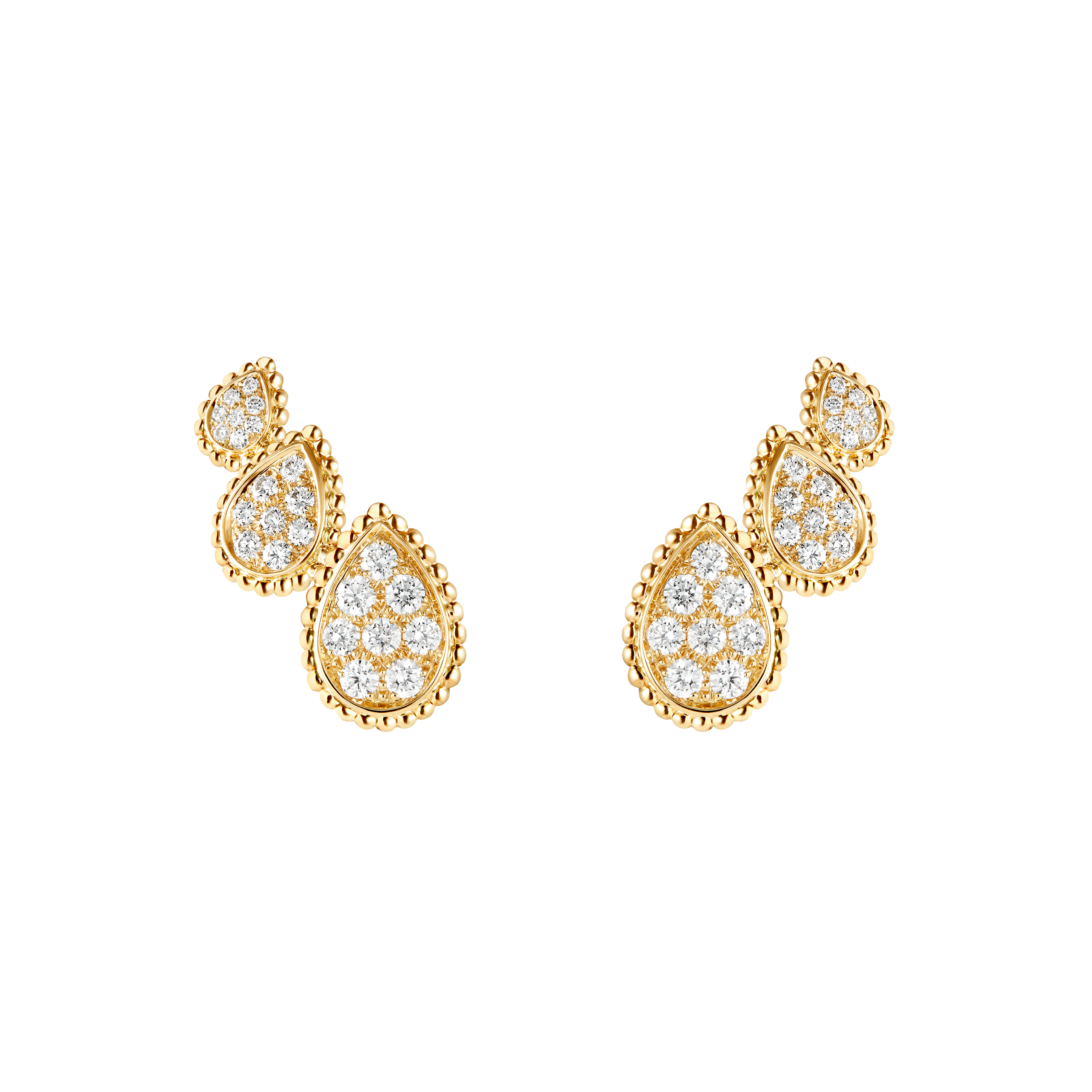 · Puces d’oreilles Serpent Bohème à trois motifs, pavées de diamants sur or jaune, qui ajoutent une touche de modernité tout en intégrant le charme intemporel du serpent emblématique.