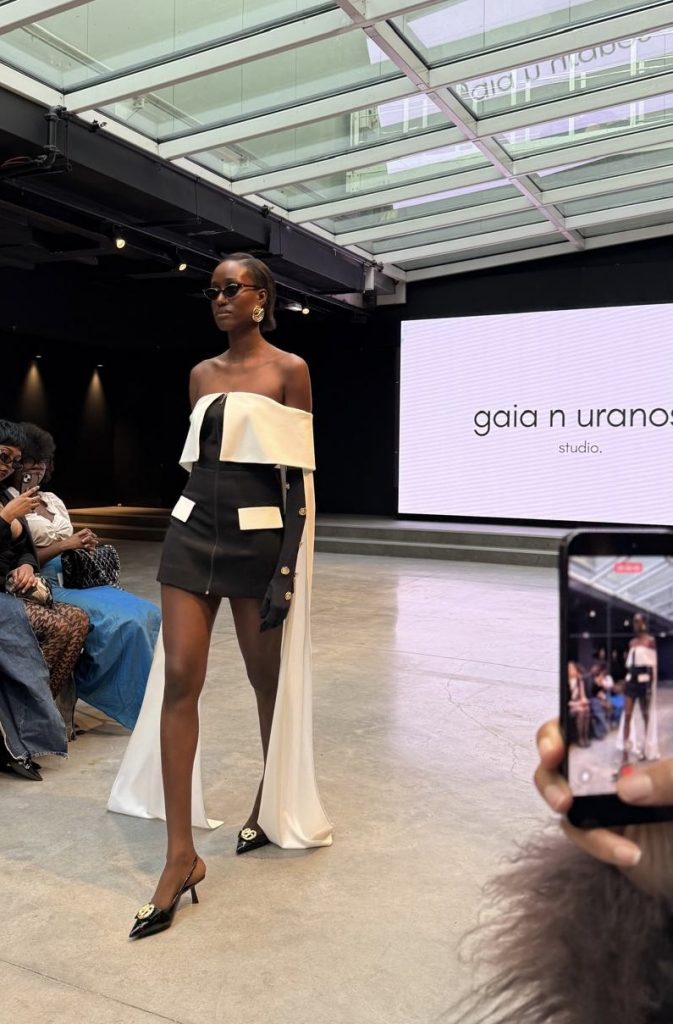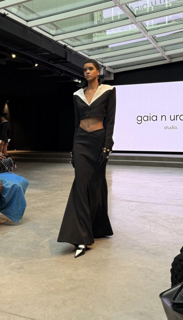 Au fil du défilé, une cohérence se dessine. Gaia n Uranos propose une mode contemporaine, où les contrastes et la précision des coupes construisent une féminité affirmée. Une féminité tenue, présente, qui ne cherche pas à en faire trop mais qui s’impose par la maîtrise de ses lignes et de ses détails.
