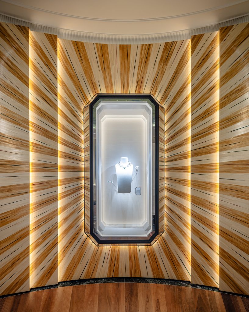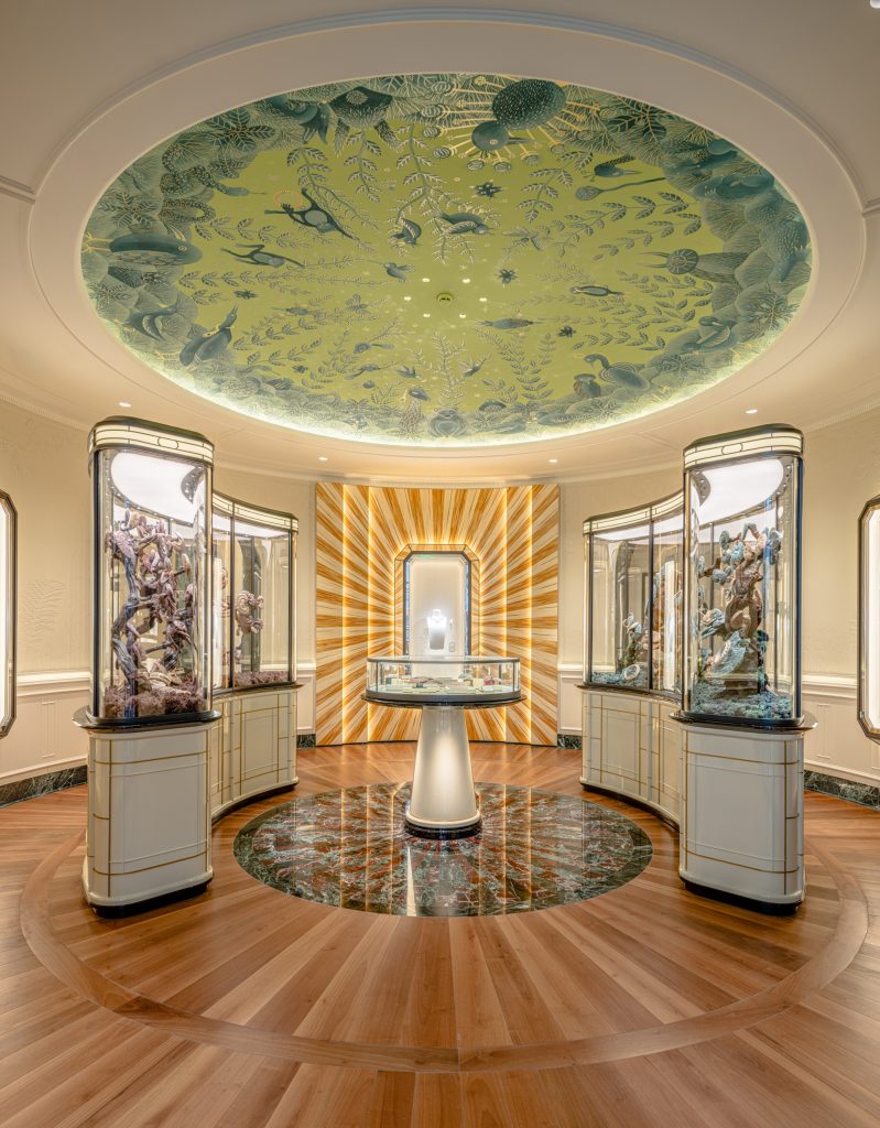 L’actrice Chen Duling, radieuse, a parcouru les salons du flagship vêtue de créations spectaculaires : le collier Tricot, serti d’un diamant rond de 2,01 carats et pavé de diamants, la bague Boutons (4,63 carats) et les boucles d’oreilles assorties, toutes rehaussées de cristal de roche. Lors de l’exposition, elle a choisi les bijoux d’épaule The Silhouette — deux diamants ronds totalisant 5,16 carats — ainsi que le bracelet assorti (2,30 carats), avant d’opter pour un troisième look avec le collier point d’interrogation « Plume de Paon », pavé de diamants en or blanc. Chaque pièce soulignait sa silhouette avec une grâce couture, entre puissance et délicatesse.