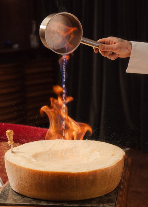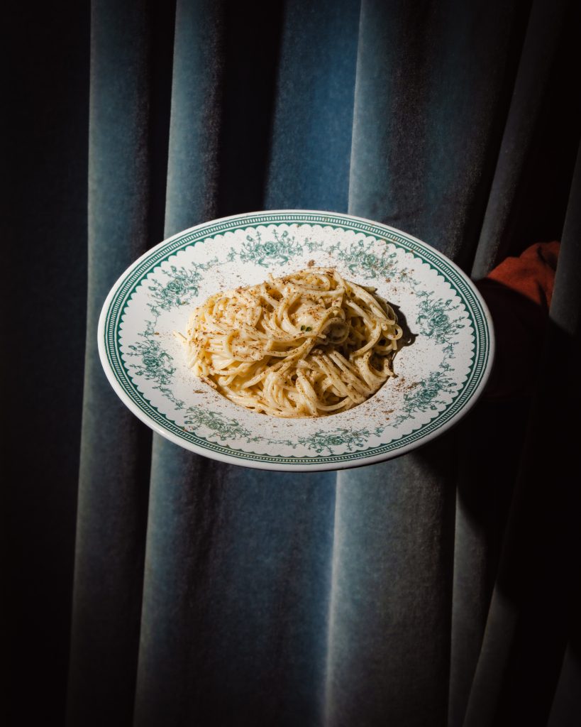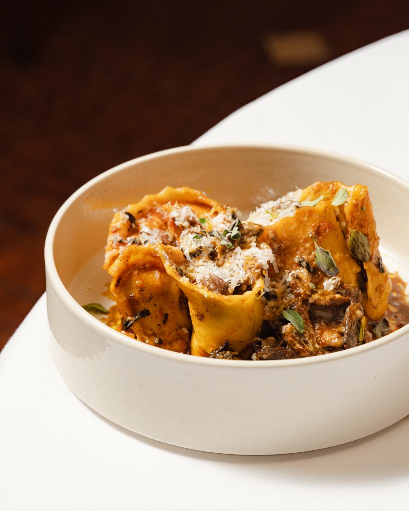 Sa signature ? Les pâtes, évidemment. Al dente, généreuses, et surtout sublimées à la meule de pecorino, flambées à la grappa directement en salle. Un spectacle maîtrisé qui transforme chaque service en expérience. Agnolotti à la ricotta, carbonara, cacio e pepe : des classiques exécutés avec justesse et intensité.